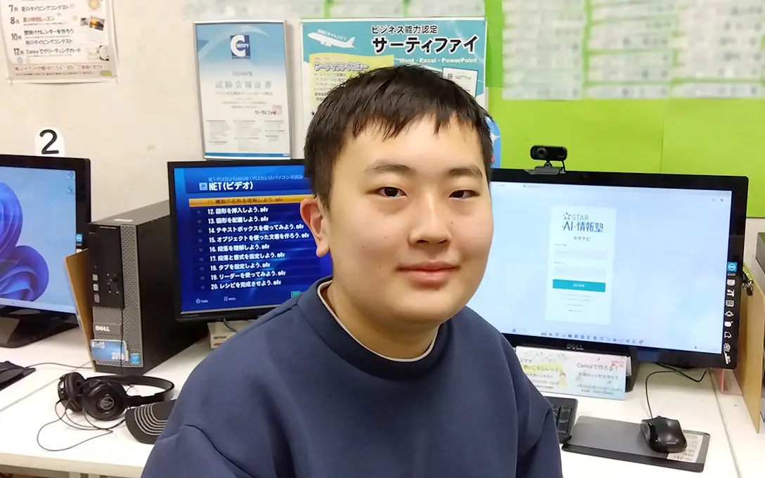 開設当時から集合を担当していましたが、2024年春から個別学習のみで子供達に教えています。プログラミングやタイピング指導を楽しく学んでいただくように日々努力しています。