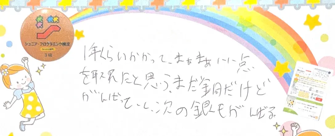 パソコンスキルもさることながら、いつの間にか背を抜かされていたり日々お子さんの成長に驚いています。また近くで成長を見ることができ嬉しくもあります。