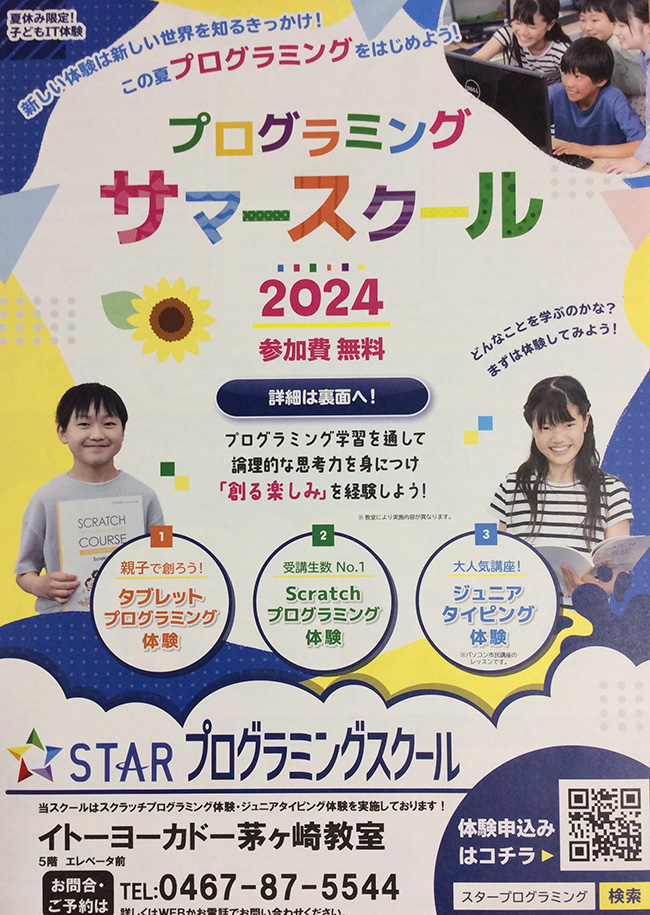 こんにちは、茅ヶ崎のプログラミング教室、スタープログラミングスクール イトーヨーカドー茅ヶ崎教室です。