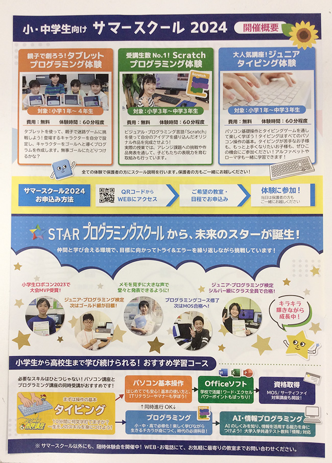 スタープログラミングスクールでは、この夏、無料で参加いただけるサマースクールを開催いたします。