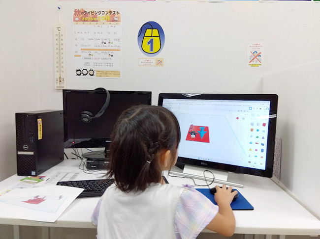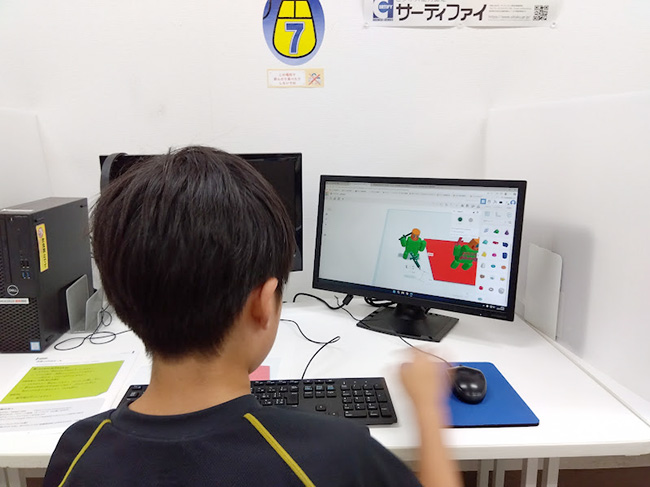 はじめての3Dプリンタ体験、教室ではパソコンでこういうのを作りたい!というデザインを考えてもらいました。