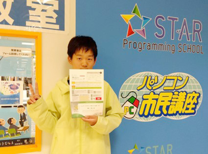 合格したのは、小学6年生のTくん。彼は海老名教室でプログラミングを始めて丸2年