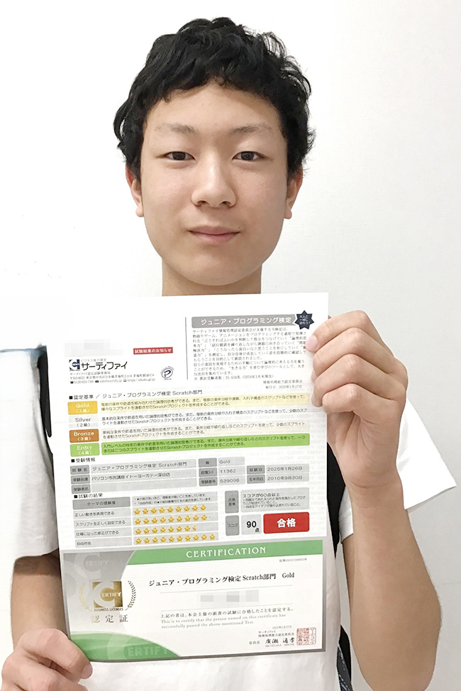先日ジュニア・プログラミング検定のゴールド(1級)合格者の保護者の方からうれしい声をいただきました。