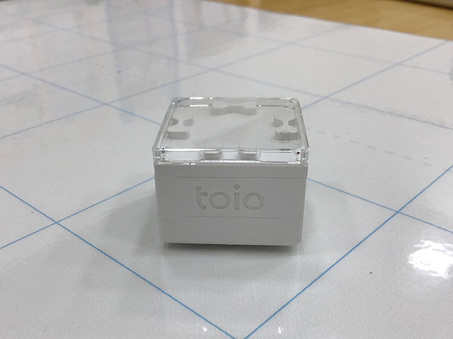 toioという小さなブロック型のロボットを、パソコン上で作ったプログラムで動かしています。