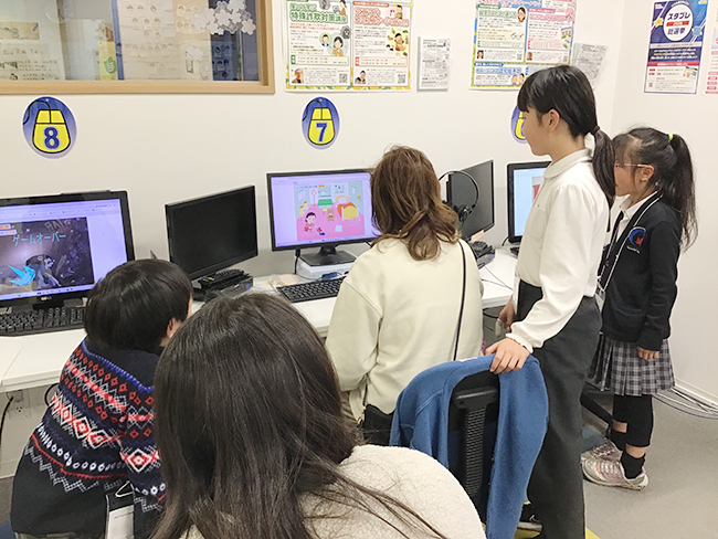 当教室ではゲームを作ったり、キャラクターを動かしたりしながら学びます。
