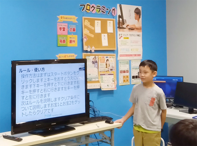 トップバッターという大役をしっかりこなし大きな声でゲームを操作しながらプログラム発表ができました。