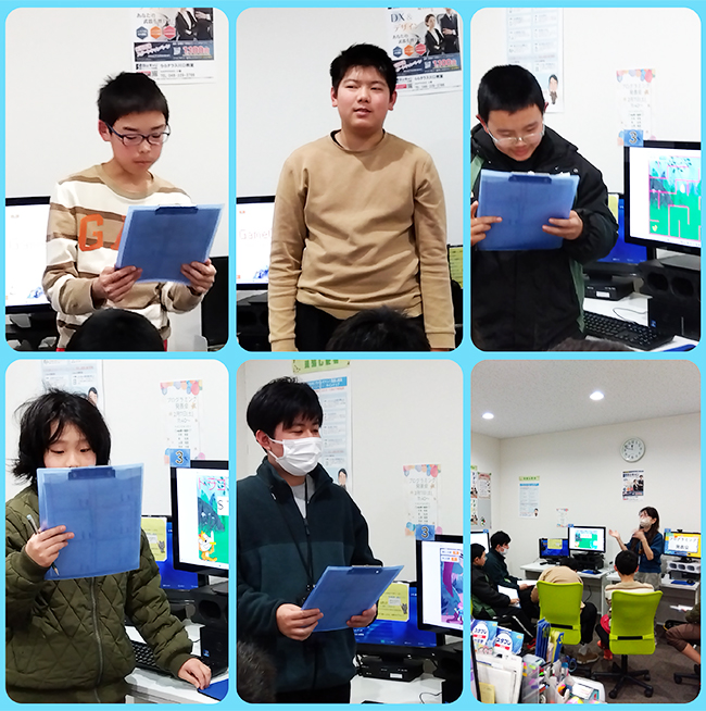 子どもたちが日頃のレッスンで作ったゲームを紹介し、工夫したポイントやこだわりを自分の言葉で発表してくれました。
