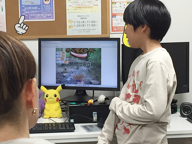 「ScratchⅡ」クラスでは、プログラムだけでなく自作のキャラクターや音楽にも挑戦しました。