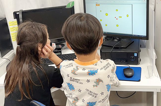 Scratchエクストラコースが終わって、AI・情報プログラミングコースを受講している様子。慣れればオンラインで家からの受講もできますが、いつものリズムで慣れた教室に通って受講することもできます。