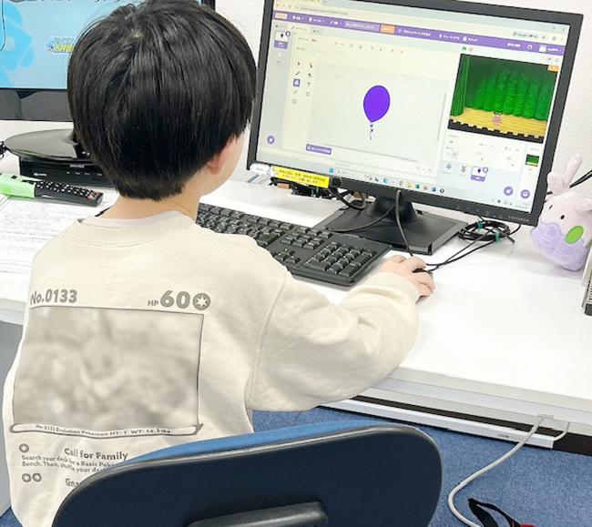 春から小学4年生になったSくん、ポケモンが大好きでスプライトをオリジナルで描いています!いつも教室に来る際に、お気に入りのヌメラを連れてきてくれます。