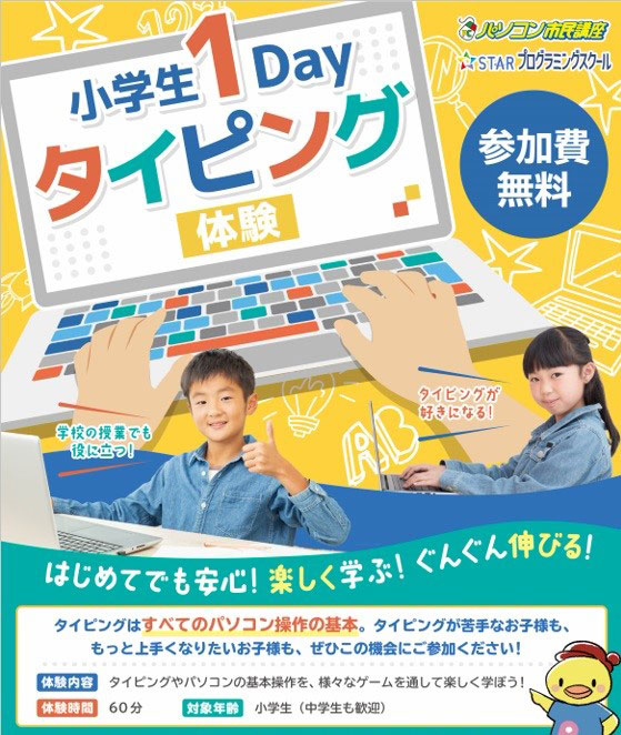 現在、「小学生 1DAY タイピング体験」を実施中!(小学生だけでなく、中学生も大歓迎!)