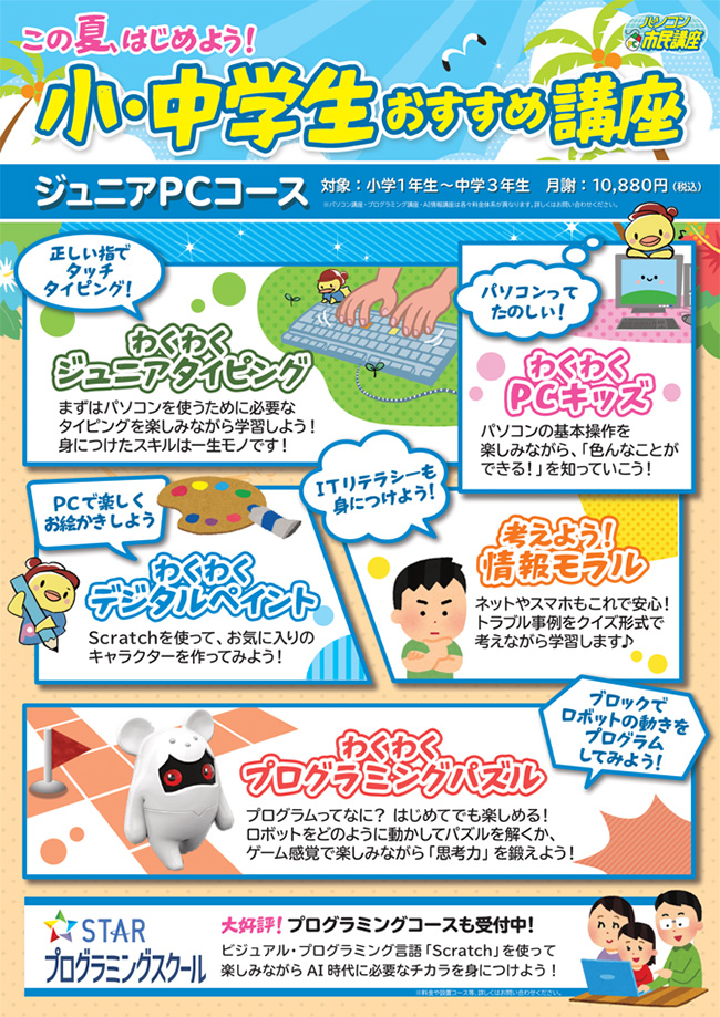 プログラミングにご興味のある保護者さま、お子さま、是非この夏休みに体験にお越しください。