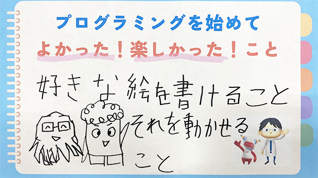 記念にプログラミングを始めてよかった!楽しかった!ことを教えてもらいました